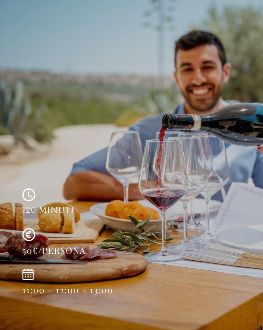 Un vero e proprio viaggio nei gusti della nostra terra. L'esperienza include una visita guidata tra i nostri vigneti.